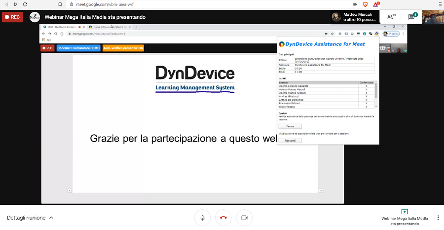 Technical and marketing staff of Mega Italia Media take part in web-conference to the presentation of the new DynDevice Assistance for Meet extension