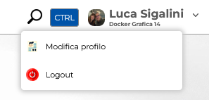 Inoltre, ora cliccando il proprio nome sarà possibile accedere in modo rapido alla maschera di "Modifica profilo" (dalla quale sarà possibile cambiare la propria fotografia, ma anche la propria password di accesso), nonché alla voce "Logout" per uscire dal sistema.