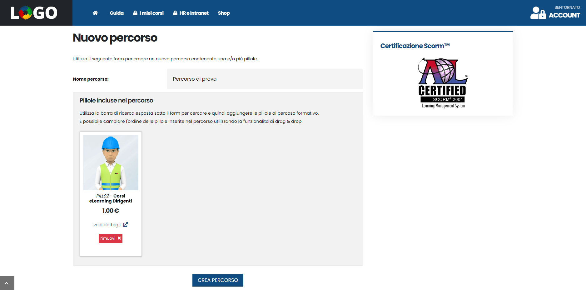 Il cliente che sfruttando l'e-Commerce pubblico acquisterà uno o più percorsi, acquisterà di fatto il diritto di accesso ai corsi o alle pillole e-Learning contenute nel percorso stesso. Per sé stesso, e/o anche per altri utenti in base alla quantità di percorsi formativi acquistati.