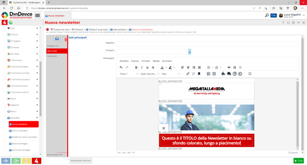 Migliorie alla "Newsletter per DEM". Sono state apportate numerosissime migliorie anche al modulo "Newsletter", con il quale è possibile inviare campagne DEM (direct e-Mail marketing) per pubblicizzare la vendita dei propri corsi, percorsi formativi, pillole e-Learning, prodotti e servizi. Le principali per questo aggiornamento sono: